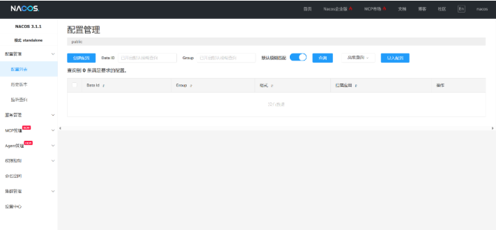 设置自己的密码后,重新登陆进入nacos